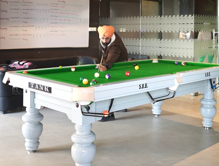 “Relax and have fun with recreational activities like snooker, carrom, and table tennis, right inside Tank's Gym.”